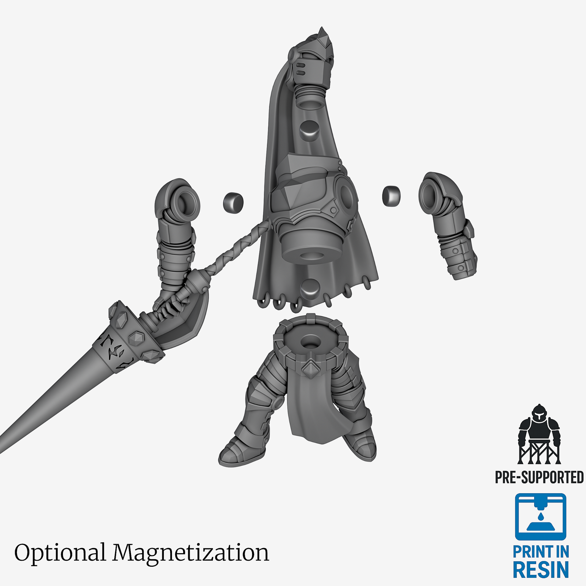 Aedros the Veil Walker is equipped with his Assassin Loadout and serves as a Champion of the Lorian Knight Order. This 32mm heroic-scale miniature is equipped with a Runic Lance and is provided in 15 parts for easy printing and assembly.