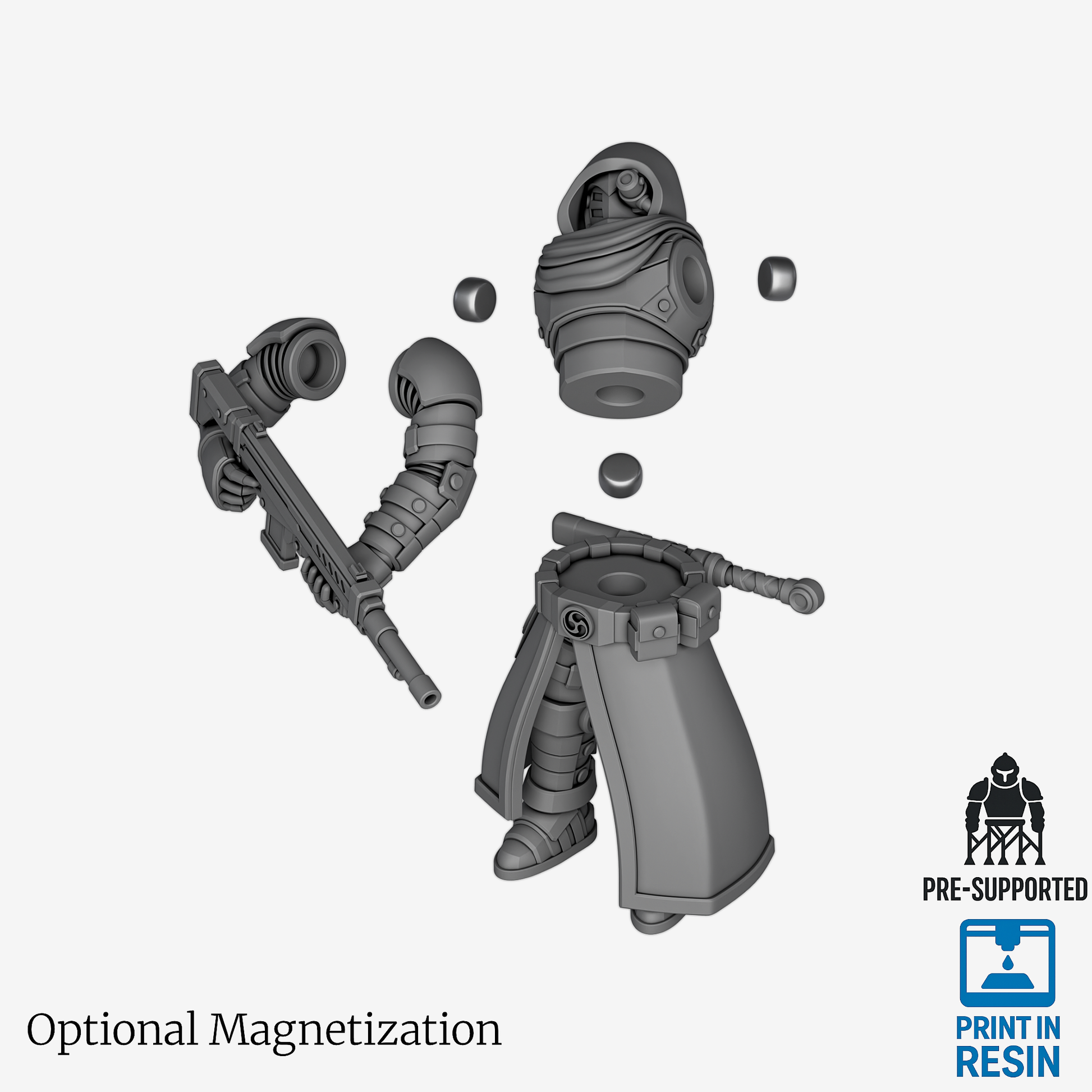 The Araashi Ranger – Marksman Loadout is a Elite unit of the Araashi Knight Order. This 32mm heroic-scale miniature is equipped with a Light Mana Rifle and is provided in 14 parts for easy printing and assembly.