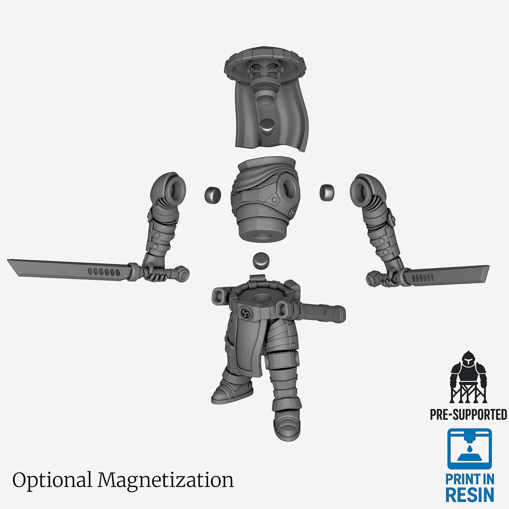 The Araashi Swiftblade – Duelist Loadout is a Elite unit of the Araashi Knight Order. This 32mm heroic-scale miniature is equipped with Dual Shortswords and is provided in 22 parts for easy printing and assembly.