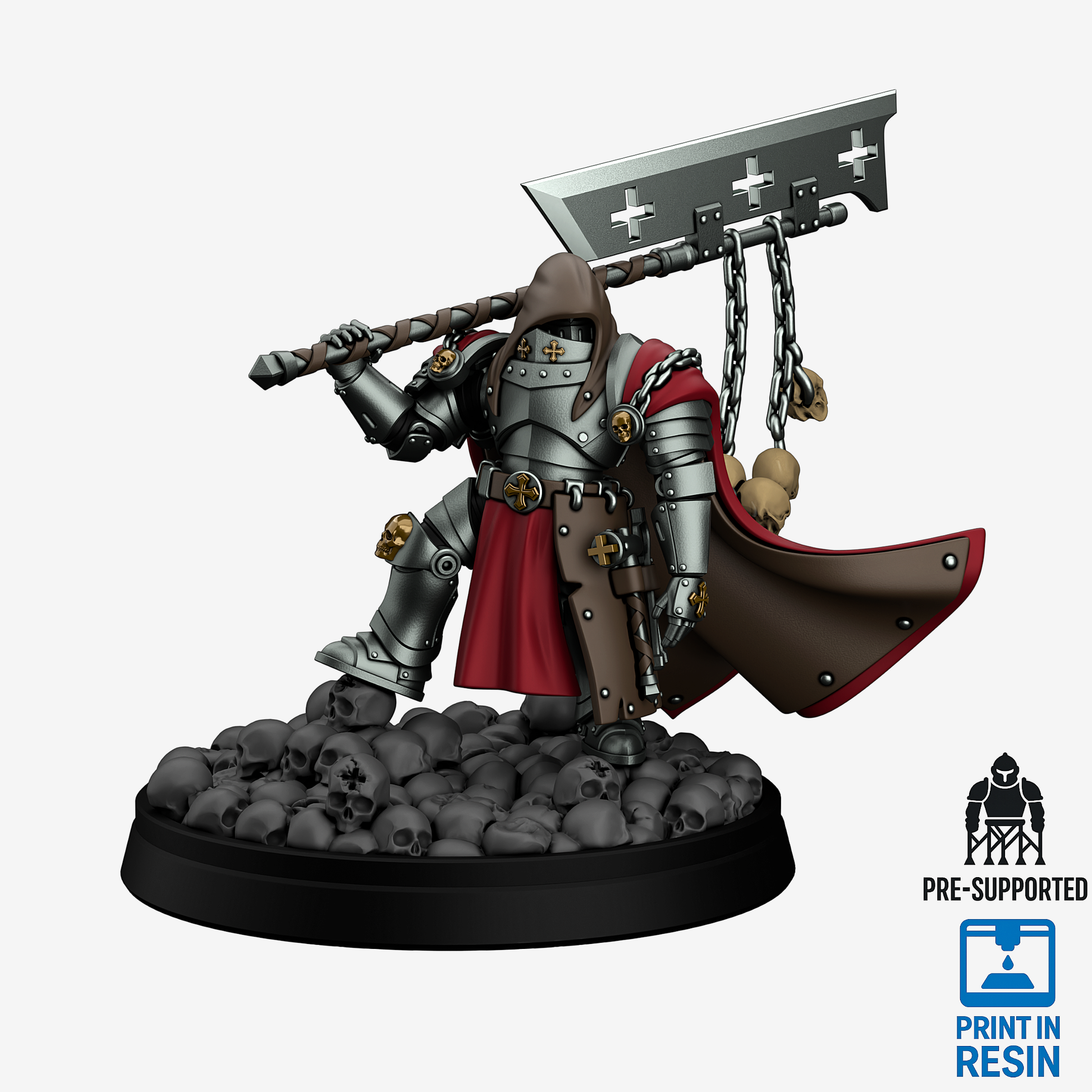 Darius the Ordained Exeuctioner is equipped with his Executioner Loadout and serves as a Champion of the Exalted Crusade. This 32mm heroic-scale miniature is equipped with a Greataxe and is provided in 10 parts for easy printing and assembly.