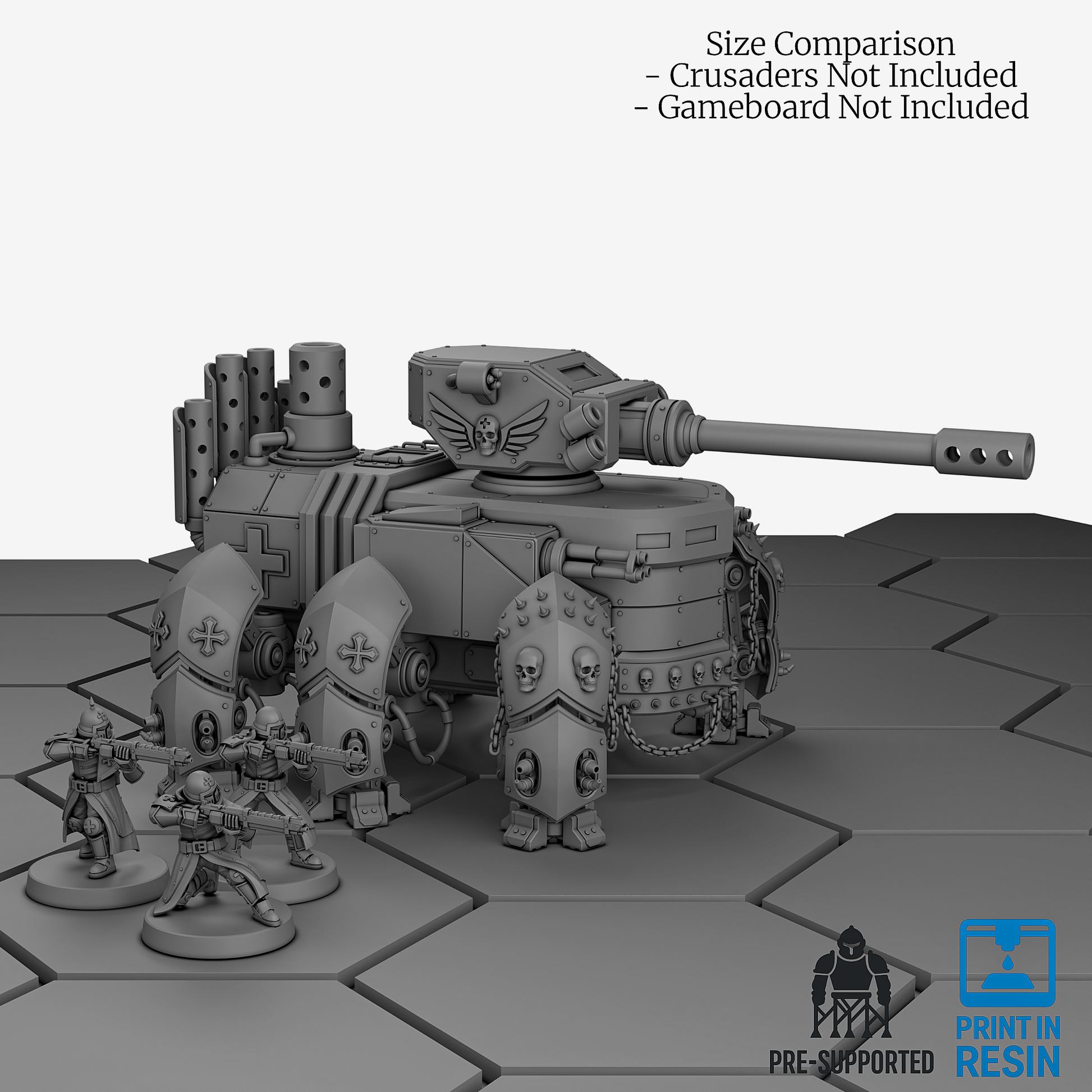 The Exalted Absolver – Siege Loadout is a Vehicle unit of the Exalted Crusade. This 32mm heroic-scale miniature is equipped with a Heavy Cannon and is provided in 11 parts for easy printing and assembly.
