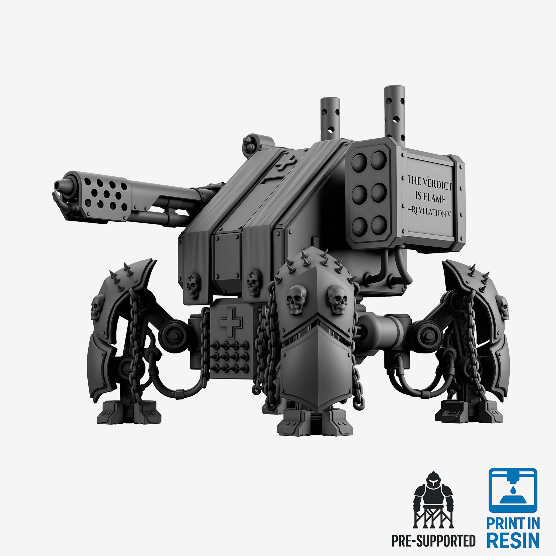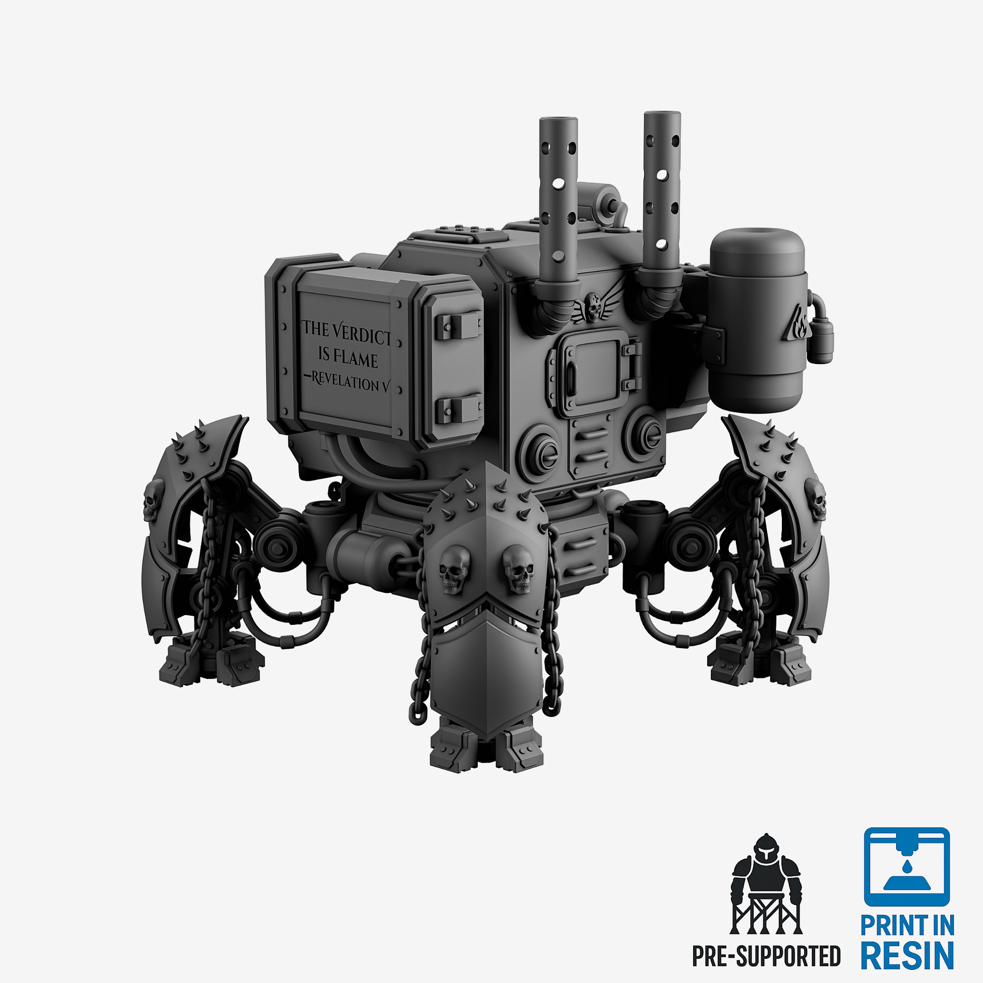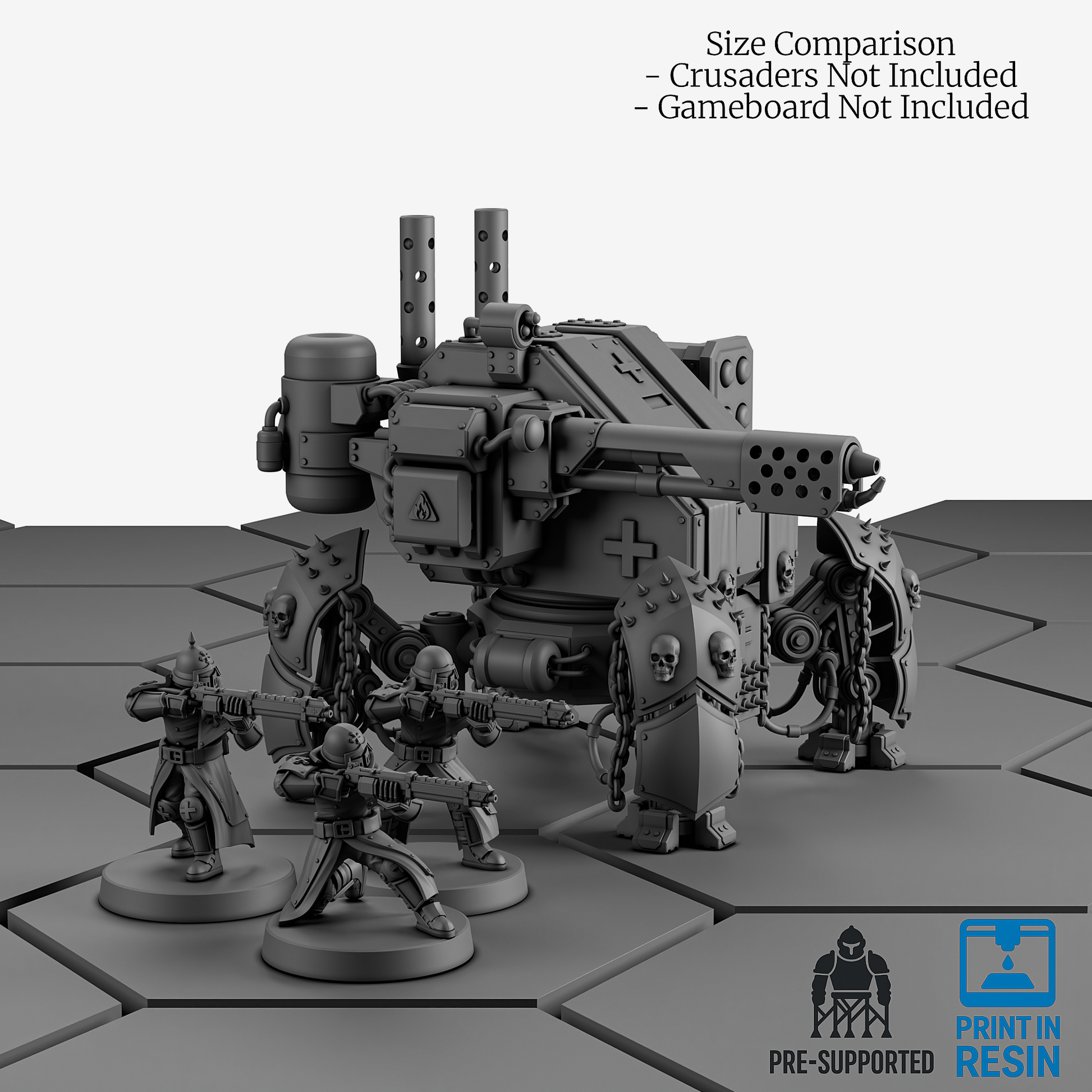 The Exalted Arbiter – Incinerator Loadout is a Vehicle unit of the Exalted Crusade. This 32mm heroic-scale miniature is equipped with a Flame Cannon & Missle Pod and is provided in 9 parts for easy printing and assembly.