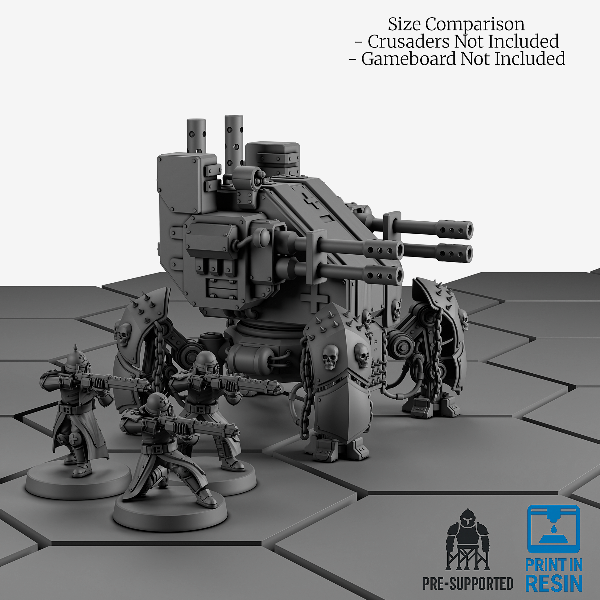 The Exalted Arbiter – Striker Loadout is a Vehicle unit of the Exalted Crusade. This 32mm heroic-scale miniature is equipped with Light Cannons and is provided in 9 parts for easy printing and assembly.