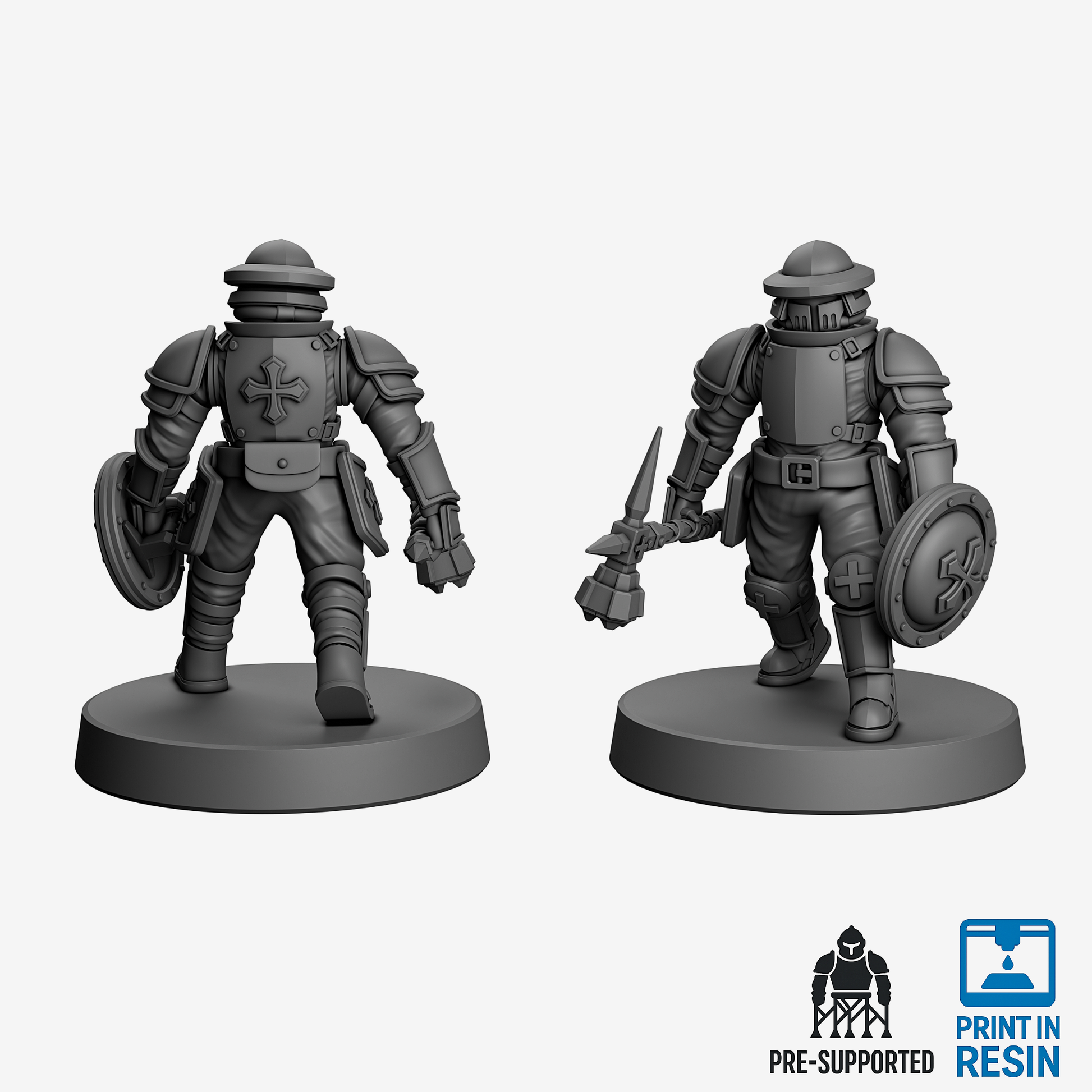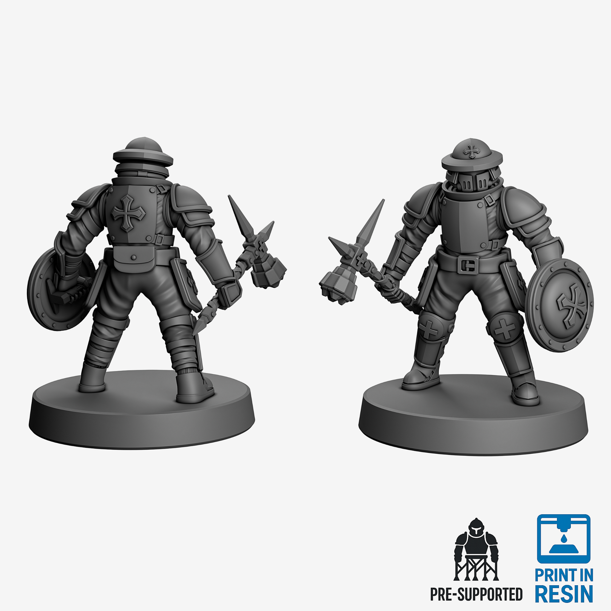 The Exalted Pilgrim – Breaker Loadout is a Core unit of the Exalted Crusade. This 32mm heroic-scale miniature is equipped with a Pickhammer & Light Shield and is provided in 30 parts for easy printing and assembly.