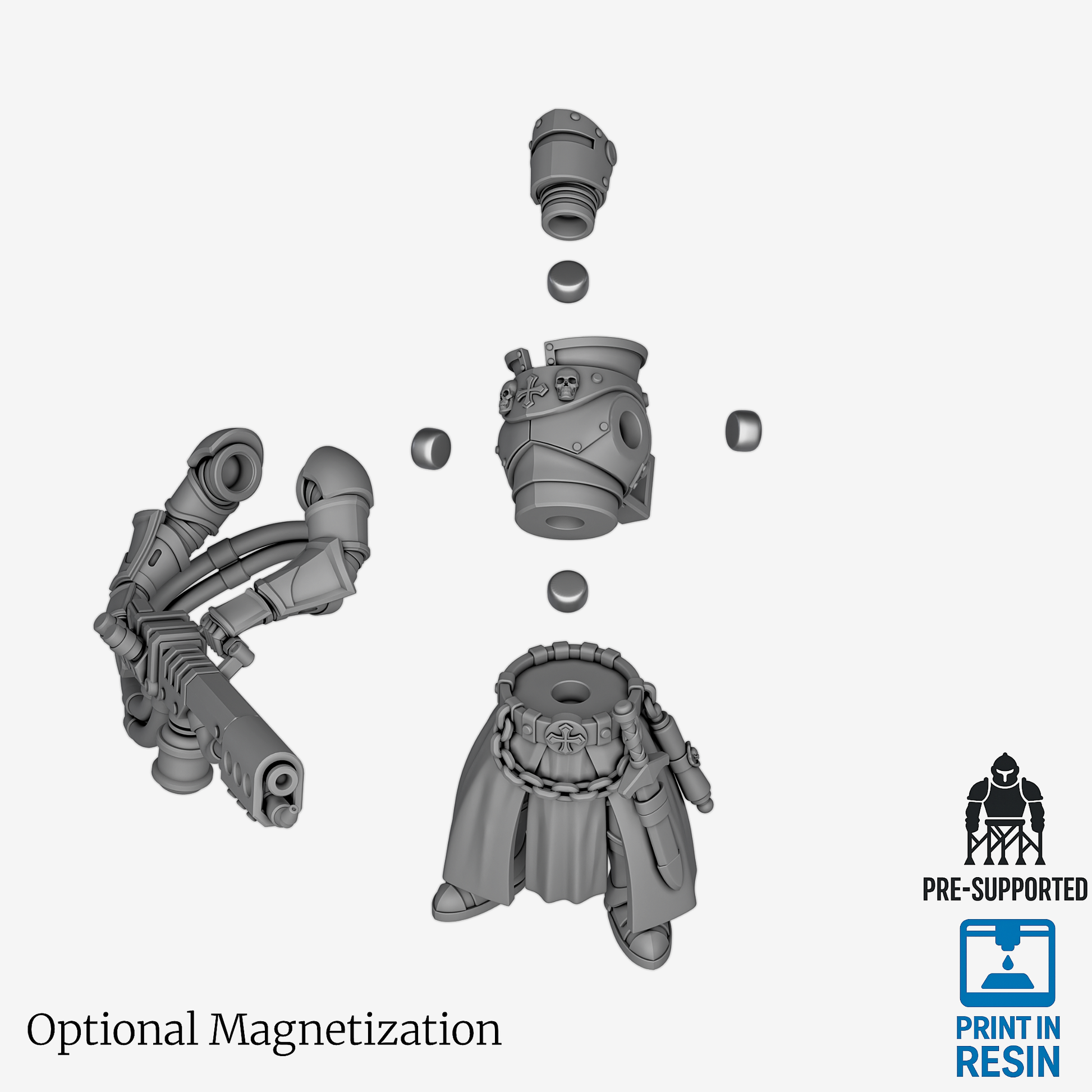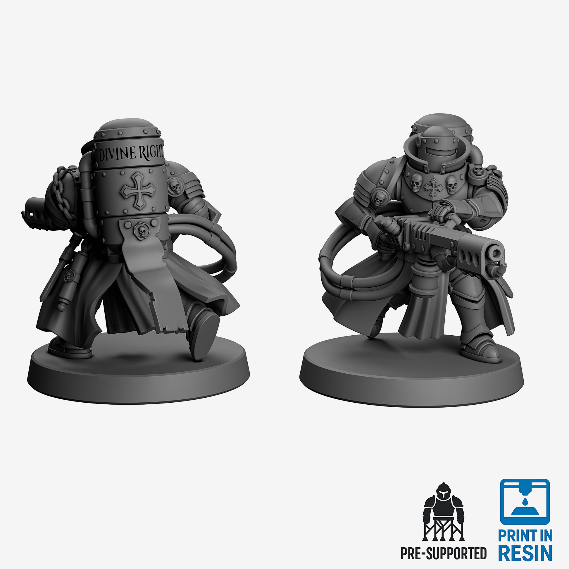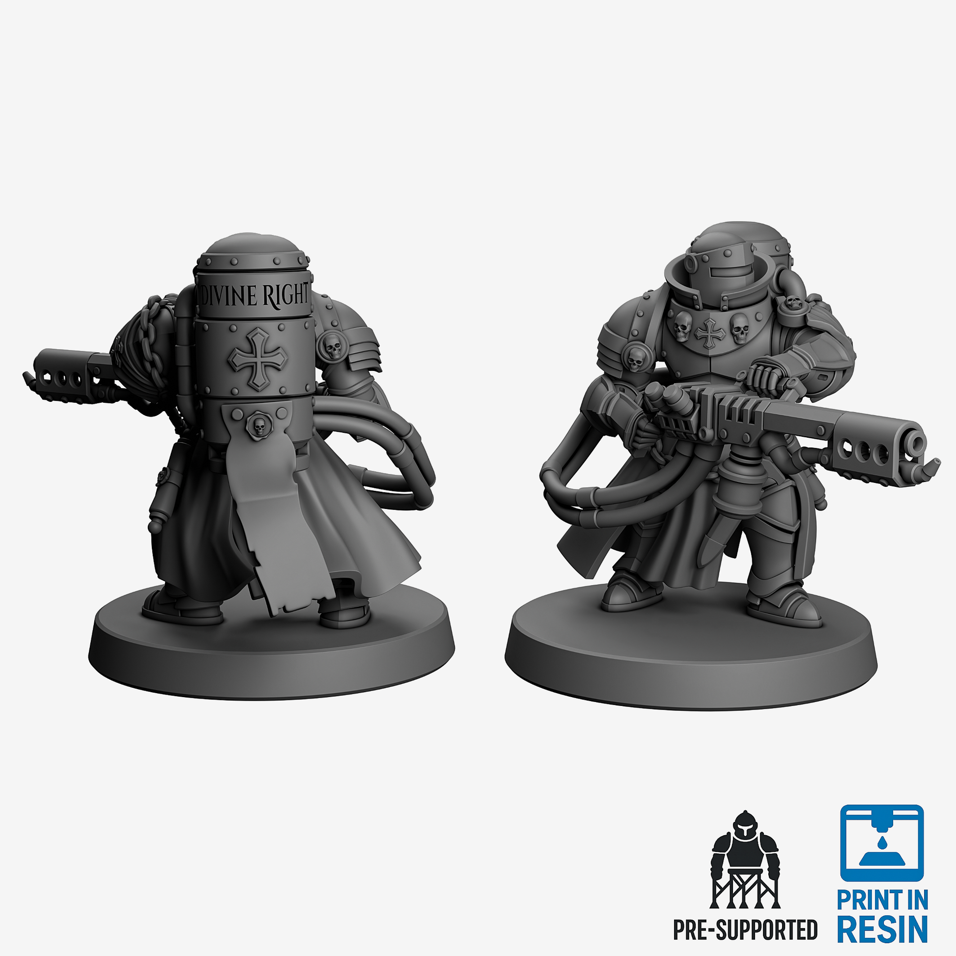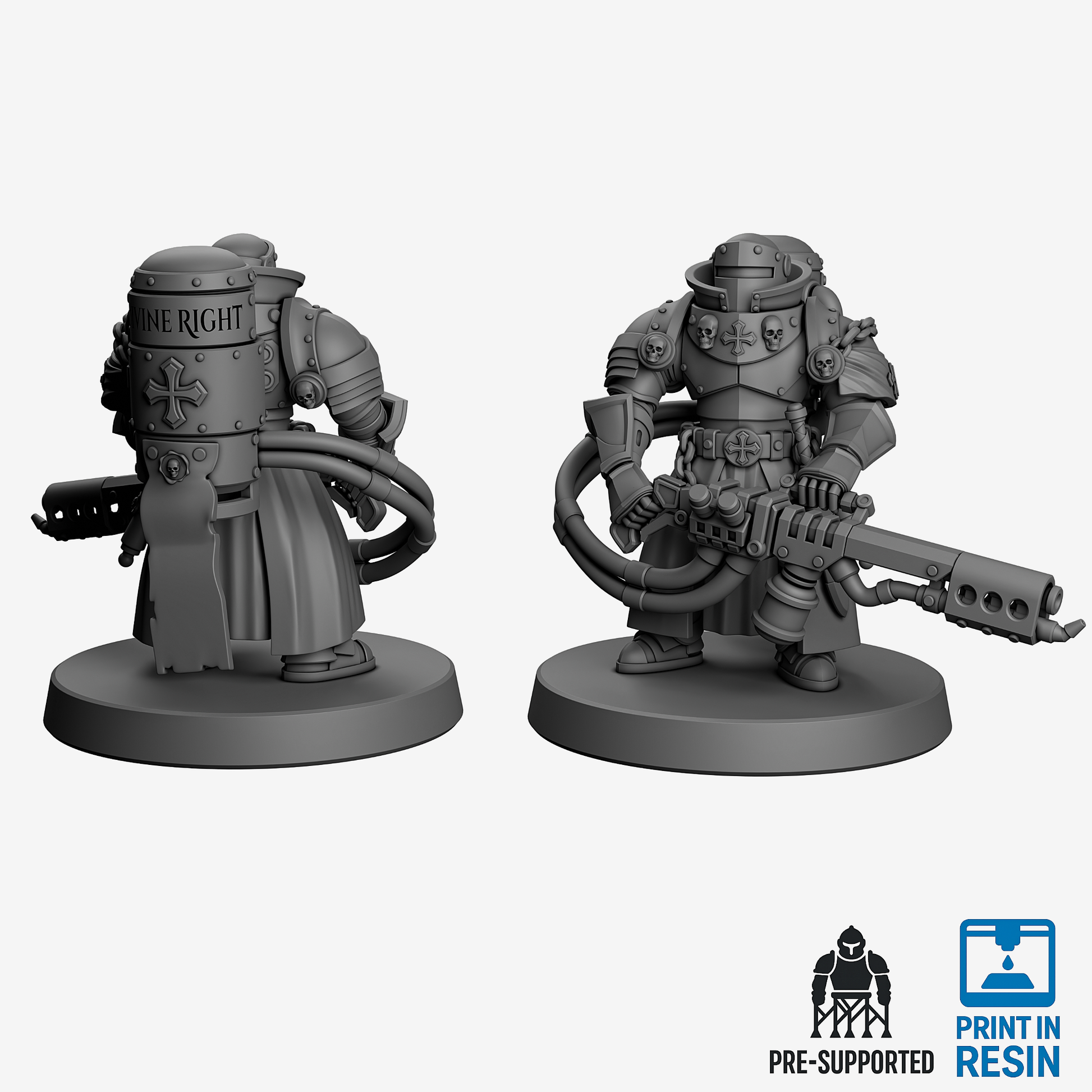 The Exalted Purifier – Sanctifier Loadout is a Elite unit of the Exalted Crusade. This 32mm heroic-scale miniature is equipped with a Incinerator and is provided in 17 parts for easy printing and assembly.