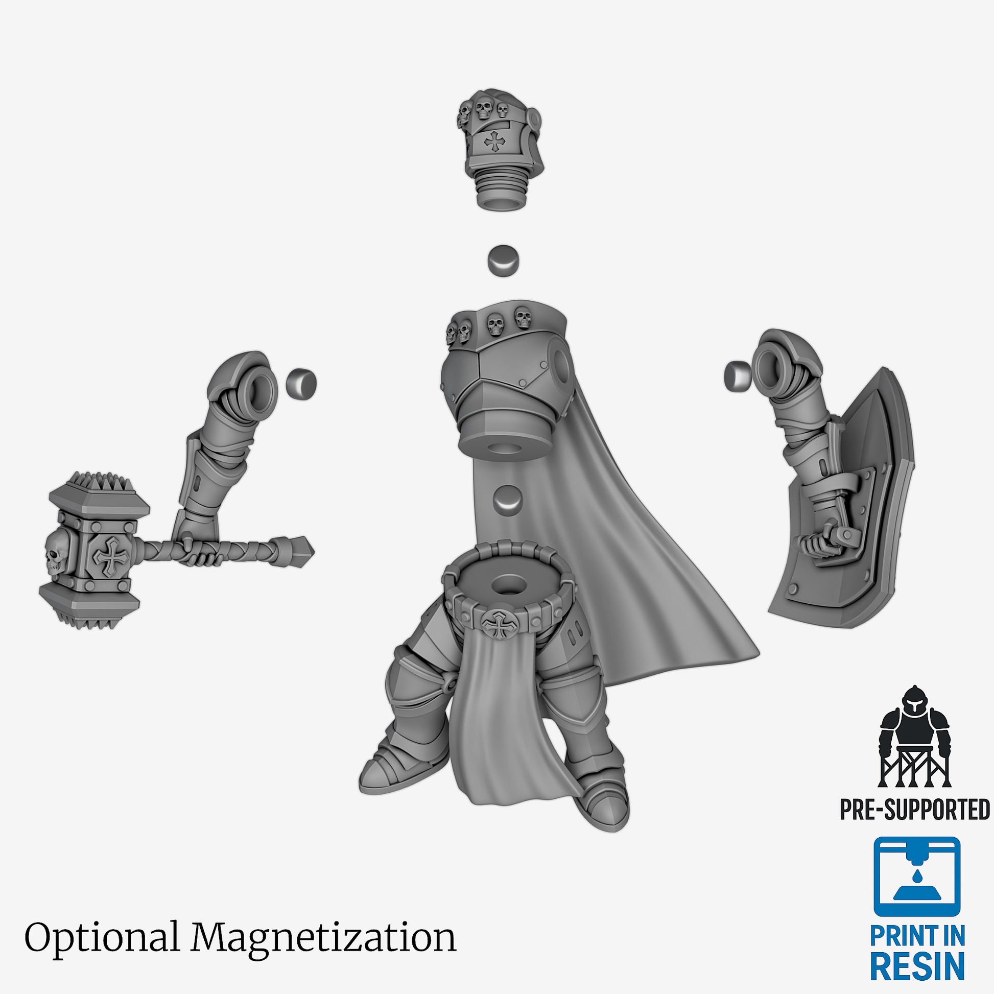 The Exalted Templar – Sentinel Loadout is a Elite unit of the Exalted Crusade. This 32mm heroic-scale miniature is equipped with a Maul & Light Shield and is provided in 28 parts for easy printing and assembly.