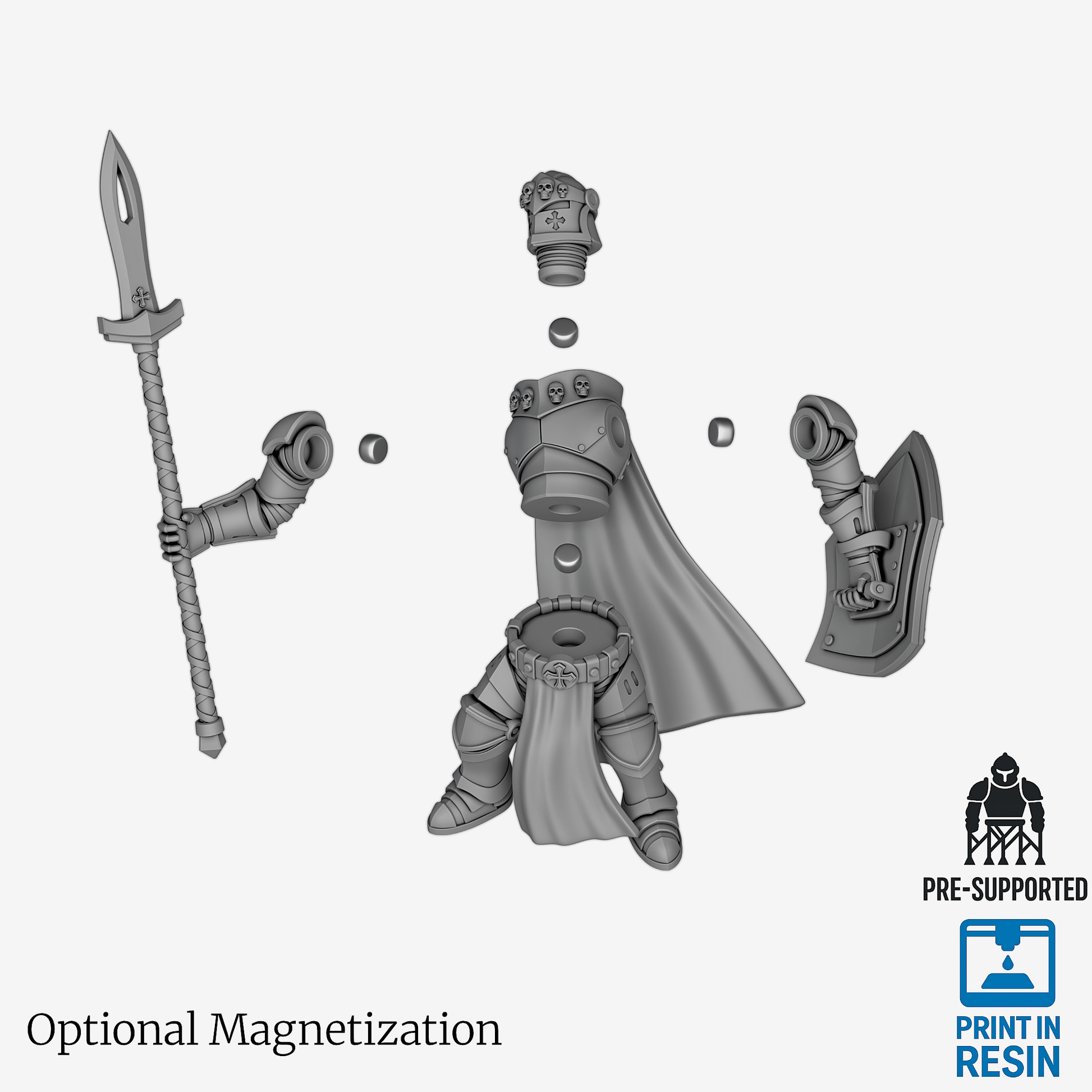 The Exalted Templar – Phalanx Loadout is a Elite unit of the Exalted Crusade. This 32mm heroic-scale miniature is equipped with a Spear & Light Shield and is provided in 27 parts for easy printing and assembly.