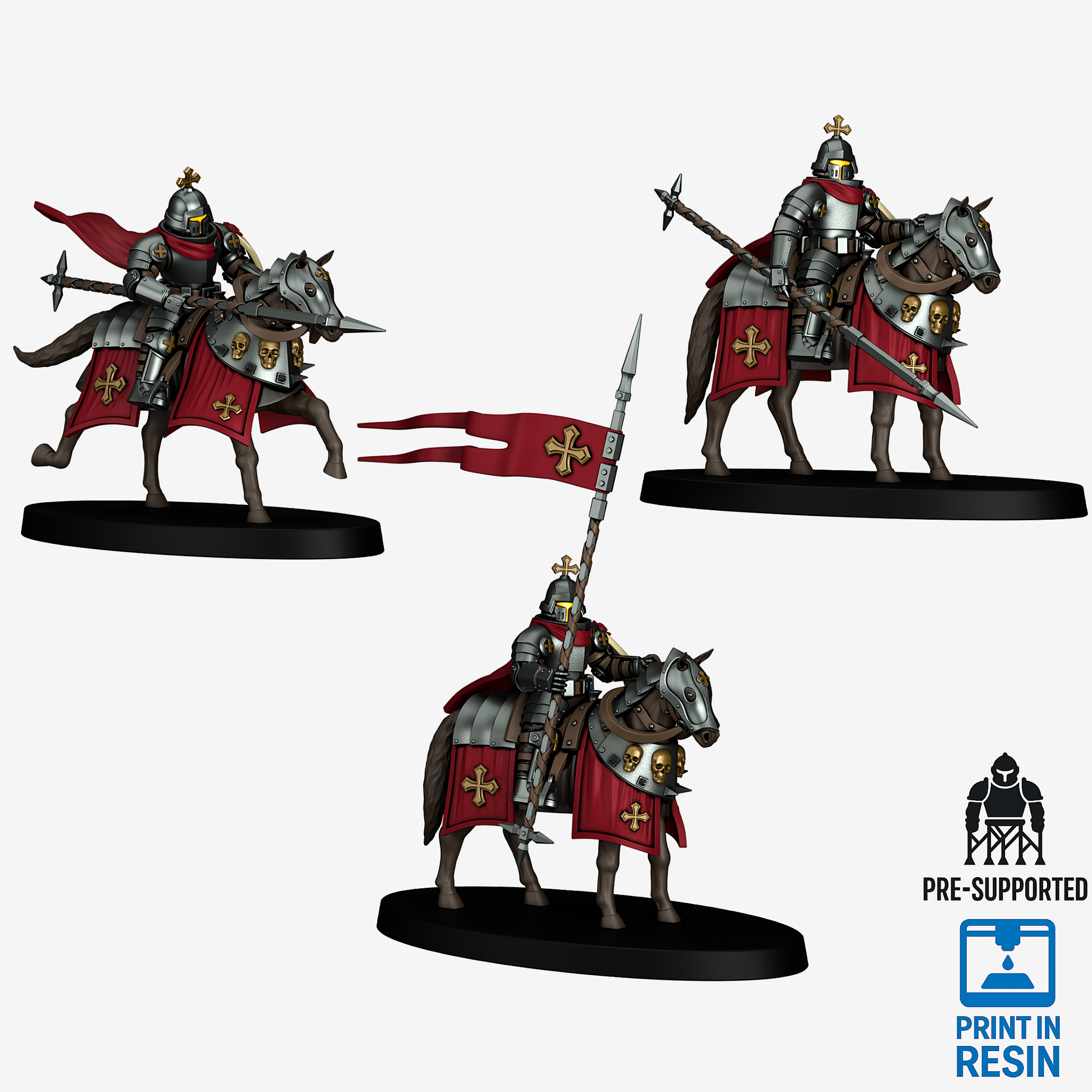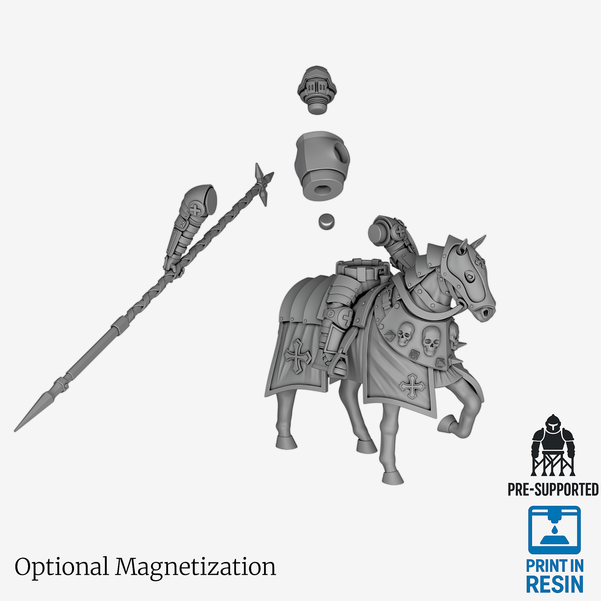 The Exalted Vanguard – Charger Loadout is a Core unit of the Exalted Crusade. This 32mm heroic-scale miniature is equipped with a Spear and is provided in 13 parts for easy printing and assembly.