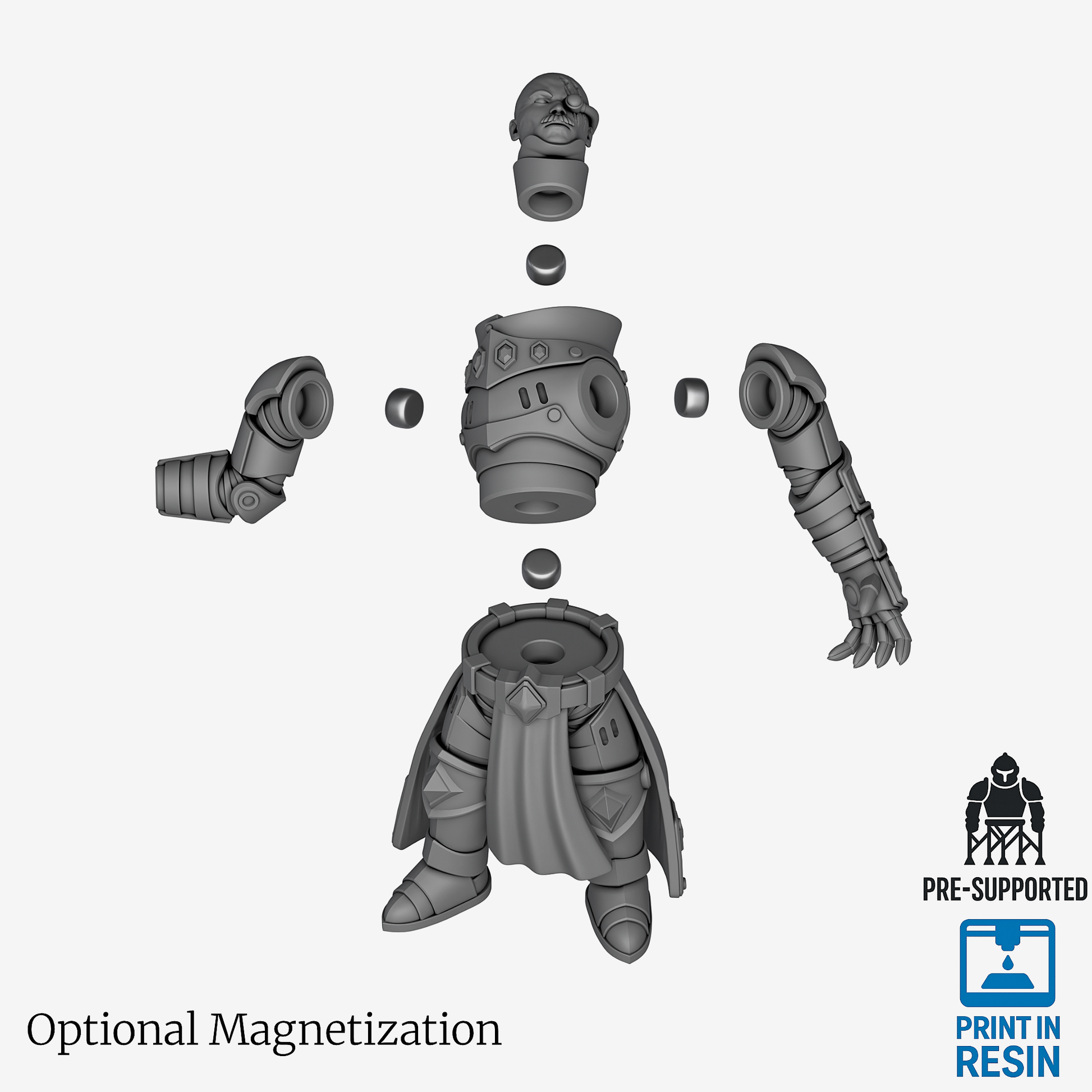 Knight-Lord Balthazar is equipped with his Sage Loadout and serves as a Commander of the Lorian Knight Order. This 32mm heroic-scale miniature is equipped with a Arcane Battlestaff and is provided in 13 parts for easy printing and assembly.