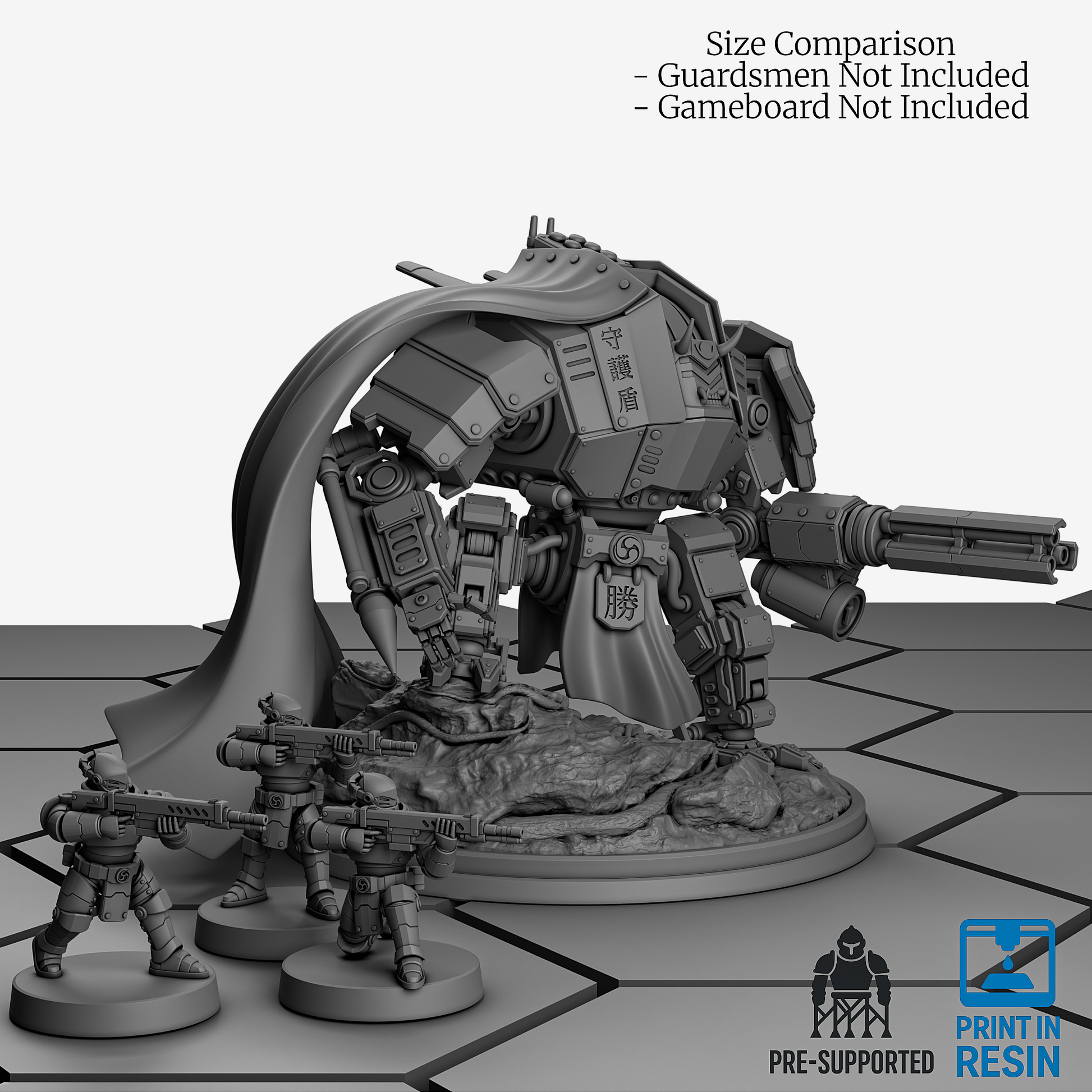 Knight-Lord Guass is equipped with his Striker Loadout and serves as a Commander of the Araashi Knight Order. This 32mm heroic-scale miniature is equipped with a stormclaw and is provided in 9 parts for easy printing and assembly.