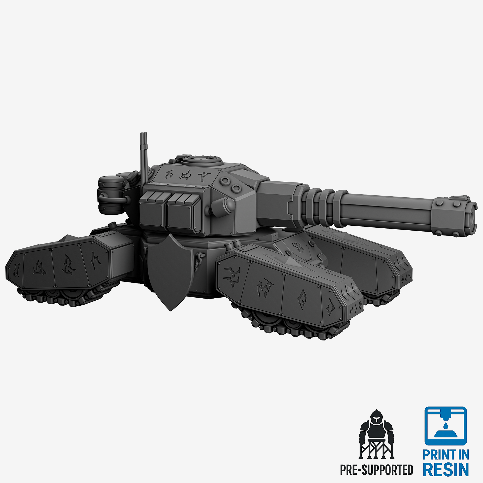The Lorian Lancer - Siege Loadout is a Vehicle unit of the Lorian Knight Order. This 32mm heroic-scale miniature is equipped with a Stormhammer and is provided in 6 parts for easy printing and assembly.
