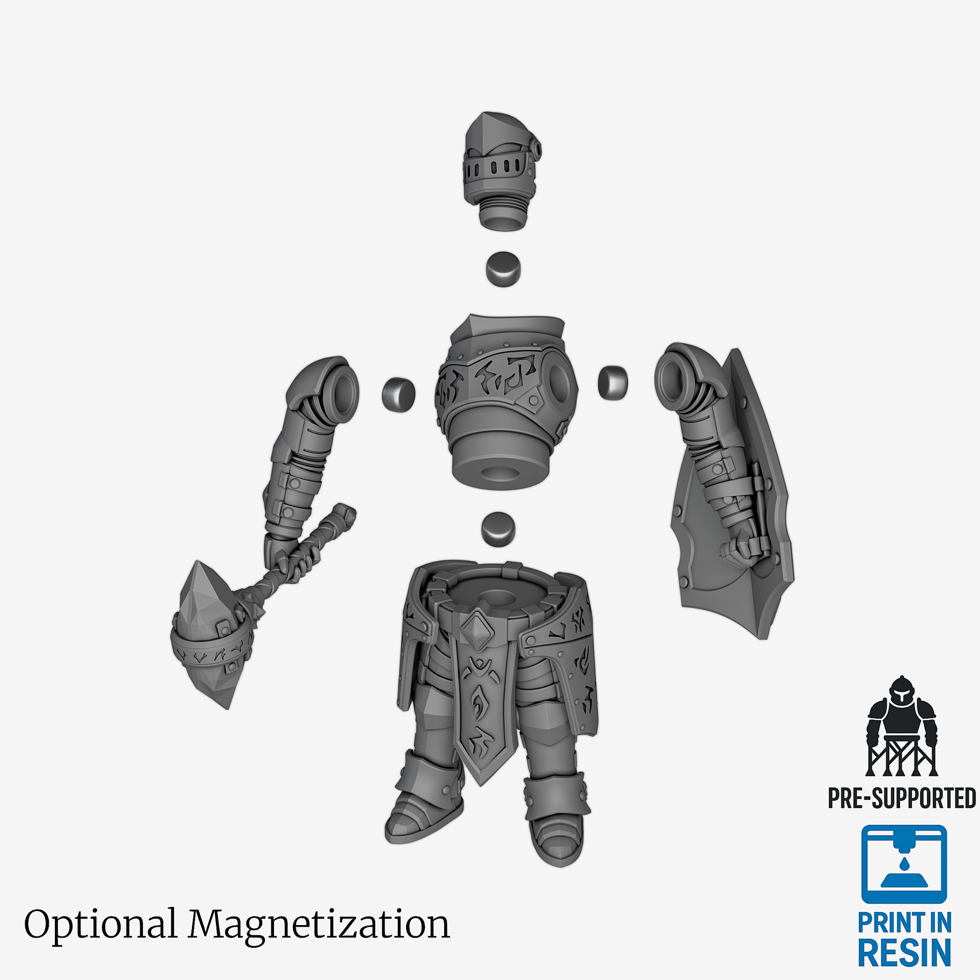 The Lorian Runesmith - Sentinel Loadout is a Elite unit of the Lorian Knight Order. This 32mm heroic-scale miniature is equipped with a Runic Maul & Light Shield and is provided in 18 parts for easy printing and assembly.