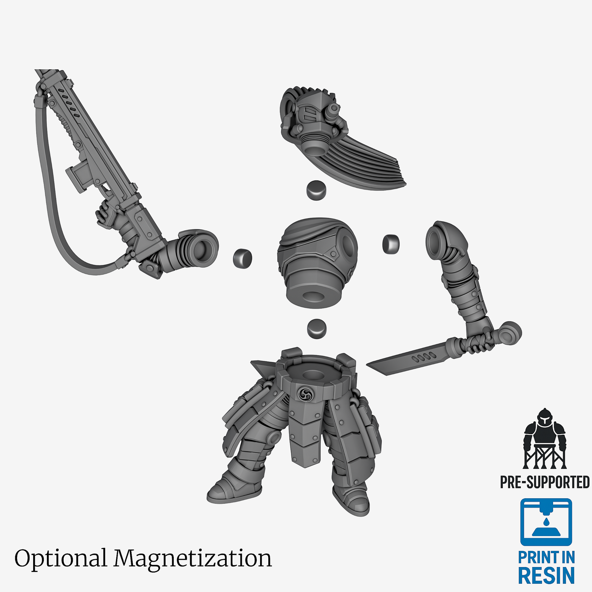 Ranger-Captain Krisu is equipped with his Marksman Loadout and serves as a Captain of the Araashi Knight Order. This 32mm heroic-scale miniature is equipped with a Light Mana Rifle and is provided in 15 parts for easy printing and assembly.